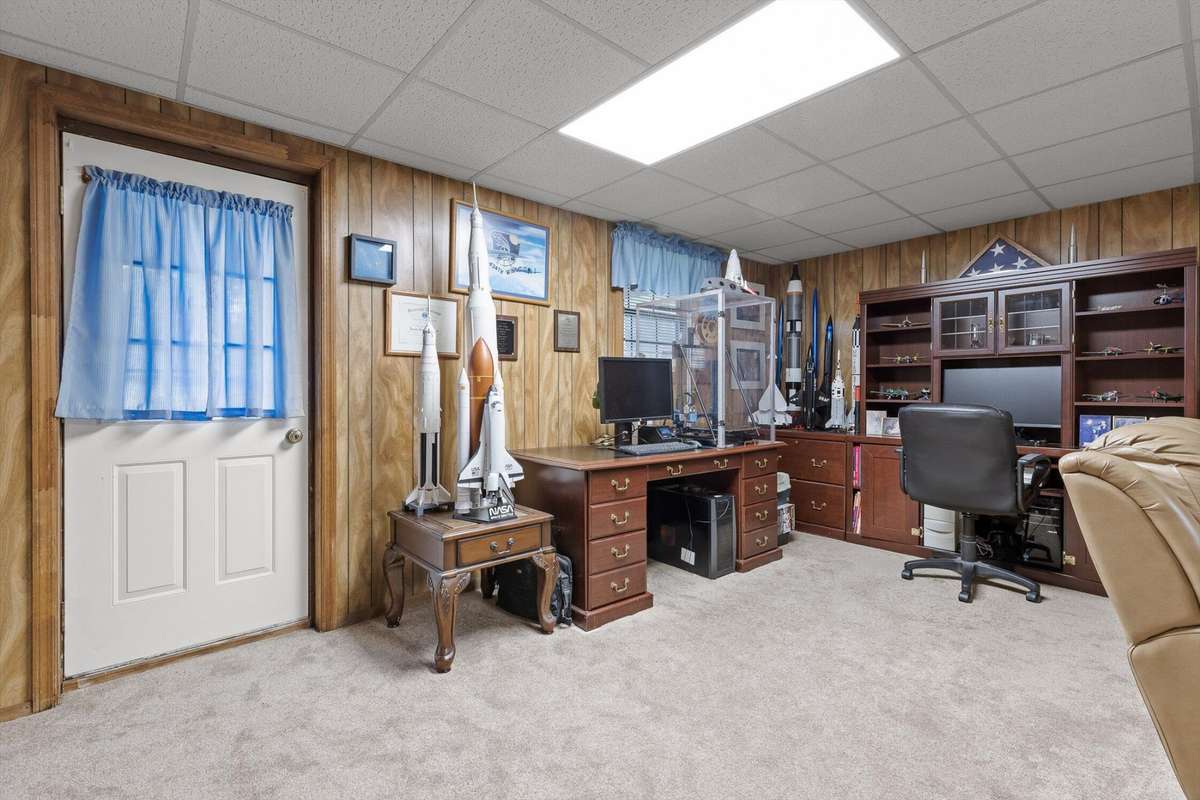 The finished basement adds valuable extra living space with a cozy den, gas fireplace, and walk- out access to the backyard—ideal for movie nights, guests, or a home office. Outside, you' ll love the large yard, extra storage building, and the peaceful setting this property provides.