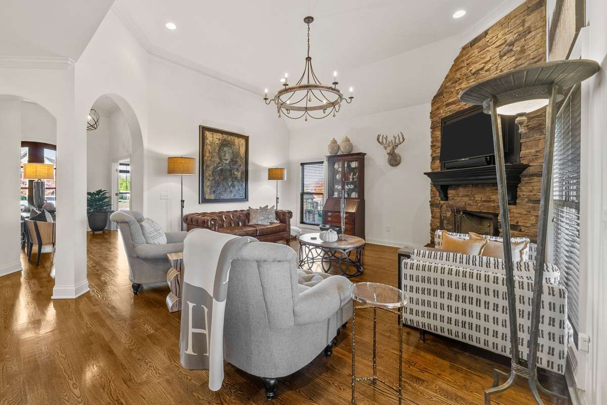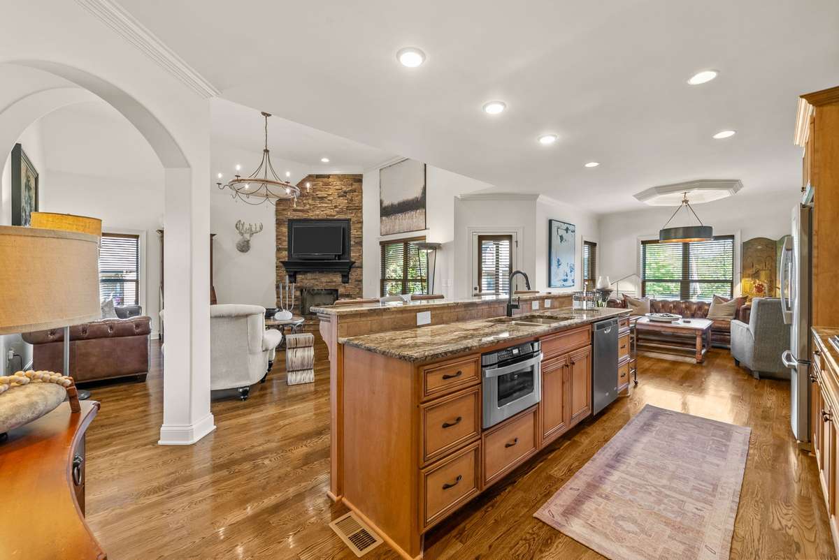 Discover refined comfort and timeless style in this impeccably maintained 4- bedroom, 3. 5- bath home offering 3, 400 square feet of thoughtfully designed living space on over half an acre in the prestigious Farmington Woods community. Built in 2017, this residence combines elegance, functionality, and warmth in every detail. Step inside to find gleaming sand- and- finish hardwood floors and designer tile throughout the entire home—no carpet at all, including hardwood upstairs in the bonus room and bedrooms. The main- level primary suite provides a private retreat with a soaking tub, tile shower, and a spacious walk- in closet. A second main- level bedroom adds convenience for guests or a home office. The gourmet eat- in kitchen features custom cabinetry, premium appliances, a large island for gathering, and an inviting dining area that flows seamlessly into the great room, creating an ideal space for both everyday living and entertaining. Upstairs, two additional bedrooms and a generous bonus room over the garage offer versatility for recreation, work, or relaxation, with ample storage throughout ensuring practicality. Set on a beautiful lot with manicured landscaping and plenty of room to enjoy the outdoors, this home delivers the perfect blend of comfort and luxury. Located in one of Lebanon’s most desirable neighborhoods, it provides a peaceful setting just minutes from schools, shopping, and only twenty minutes from Nashville International Airport.