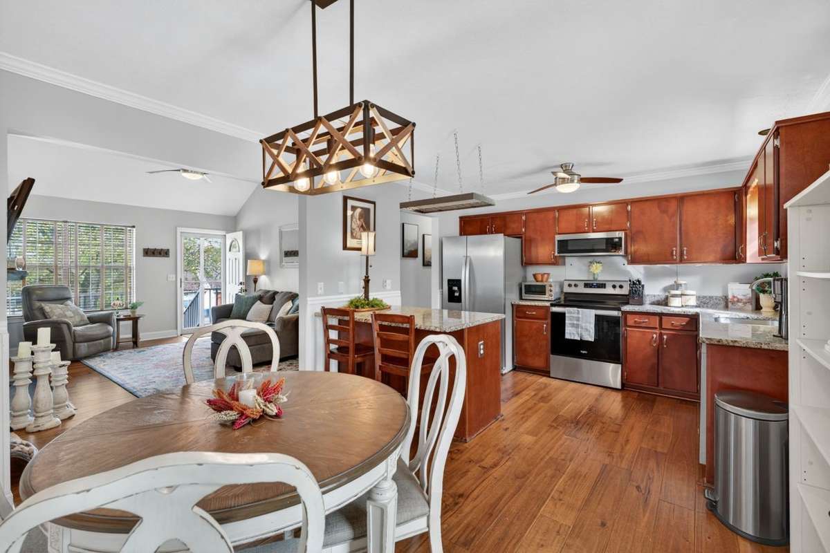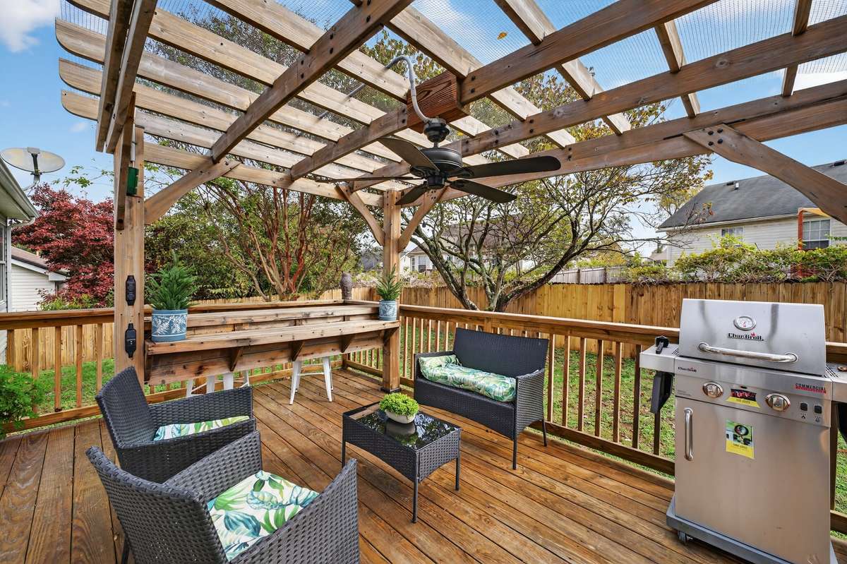 Welcome to this charming, updated home nestled on a cul- de- sac street in the quiet Stone Hedge community of Old Hickory, TN! Built in 1997, but move- in ready & improved with desirable features. Step inside & enjoy the cozy living room, featuring a vaulted ceiling & a stunning vented wood- burning fireplace wrapped in a striking stone accent—easily converted to gas, if desired. The heart of the home, the kitchen, is a delight, boasting granite countertops, an added storage island & additional counters pace, hanging pot rack, newer SS appliances, dining space, & backyard access. The current primary suite has also been smartly designed with its own stone walkway, deck, & private entrance, which allows it to function as a ready- to- go short- term rental ( STR) , offering an easy & profitable income opportunity! The improved second bath now features a lovely walk- in tiled shower & granite counters with attached linen storage. Outside, you’ll find incredible entertaining spaces: a wood deck & pergola overlooking the fenced backyard with a shed for tools & yard essentials, or enjoy your morning coffee on the covered front porch. The exterior also features refreshed landscaping, brick accents, & a massively expanded driveway that provides plenty of parking, even for a boat! Additional updates include a newer water heater, ceiling fans, & an improved crawlspace ( interior drain, sump pump, & new vapor barrier) for peace of mind. All newer kitchen appliances & stacked washer/ dryer set convey! And talk about LOCATION! Enjoy the walking trails at the nearby Crooked Branch Park or go golfing at the “Best Golf Course in Nashville, ” at General’s Retreat at the Hermitage Golf Course, you can take a tour of the historic Andrew Jackson' s Hermitage, or rent a boat for the day at Blue Turtle Bay Marina! This lovely home blends comfort, convenience, & charm, while offering a serene neighborhood feel close to parks & shopping! Schedule a showing today & discover the easy Stone Hedge lifestyle!