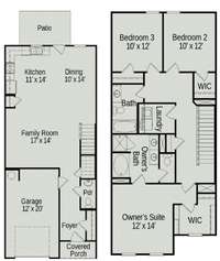 The Pinehurst at Ironhorse by Smith Douglas Homes features an open concept design which lets the light flow throughout the home, into the expansive family room. In the kitchen you may choose to retain the open flow or add a center island for more storage and counter space. The kitchen and dining room are off the back of the home and are steps away from the patio for back yard grilling. Upstairs you' ll find a laundry room large enough for all your home utilities storage, and three bedrooms, two featuring a walk- in closet. At the front of the home, the owner' s suite and ensuite are nicely appointed with a linen and water closet. Owner’s suite windows at the front of the home bring in the natural light.