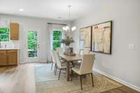 The Pinehurst at Ironhorse by Smith Douglas Homes features an open concept design which lets the light flow throughout the home, into the expansive family room. In the kitchen you may choose to retain the open flow or add a center island for more storage and counter space. The kitchen and dining room are off the back of the home and are steps away from the patio for back yard grilling. Upstairs you' ll find a laundry room large enough for all your home utilities storage, and three bedrooms, two featuring a walk- in closet. At the front of the home, the owner' s suite and ensuite are nicely appointed with a linen and water closet. Owner’s suite windows at the front of the home bring in the natural light.