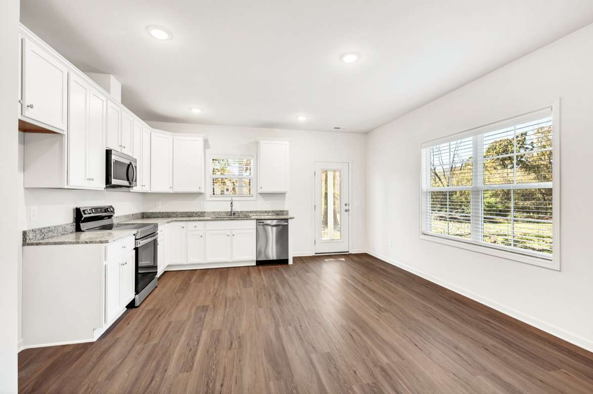 Enjoy $ 3, 000 in builder- paid closing costs plus a newly installed privacy fence 30 days after closing! Rate: 5. 75% Financing! Experience the ease of one- level living in this smart, open layout. The kitchen flows directly into a combined dining and living space, giving you one large, functional area that feels bright, open, and versatile. The primary suite gives you the privacy you want, with a roomy bath and a walk- in closet that actually fits real- life wardrobes. Three additional bedrooms and a full bath provide plenty of room for guests, office space, or hobbies—without any wasted square footage. A welcoming front porch, rear covered patio, and attached garage add practical everyday convenience.