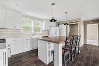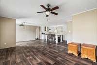 Just beyond, the doublewide mobile home offers three bedrooms and two baths, an open floor plan, luxury vinyl flooring, and a spacious kitchen complete with an island and all appliances—ideal for extended family, guests, or rental income.