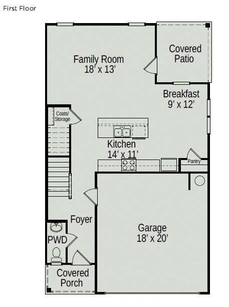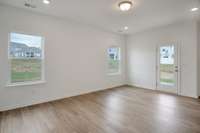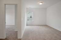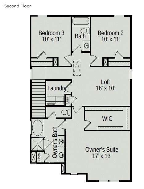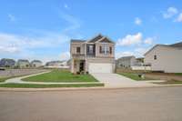 The Braselton II has a arear corner covered patio, directly accessible from the light- filled family room. A large eat- in island kitchen overlooks the family room for easy entertaining. On the second floor, a spacious loft can be optioned to a fourth bedroom and separates the private owner’s suite from two secondary bedrooms. The owner’s suite includes a massive walk- in closet, and private bath, and has easy access to the second- floor laundry room.