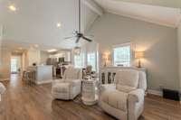 This 2 BR, 2 BA cottage in a gated community is awaiting your arrival. Open concept LR/ DR/ kitchen is perfect for family gatherings. Primary BR has a private BA and walk- in closet. Second BR has a shared BA and all flooring is LVP for your convenience. Large covered front and back porches are perfect for lounging. Both BR' s have access to the back porch. The pool and clubhouse are just steps away. Tennis court, several pools and on sight boat/ mini storage are just some of the amenities.