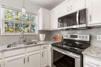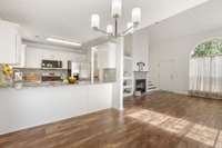 backsplash, plenty of workspace, refreshed cabinetry, and upgraded hardware. The formal dining area boasts a