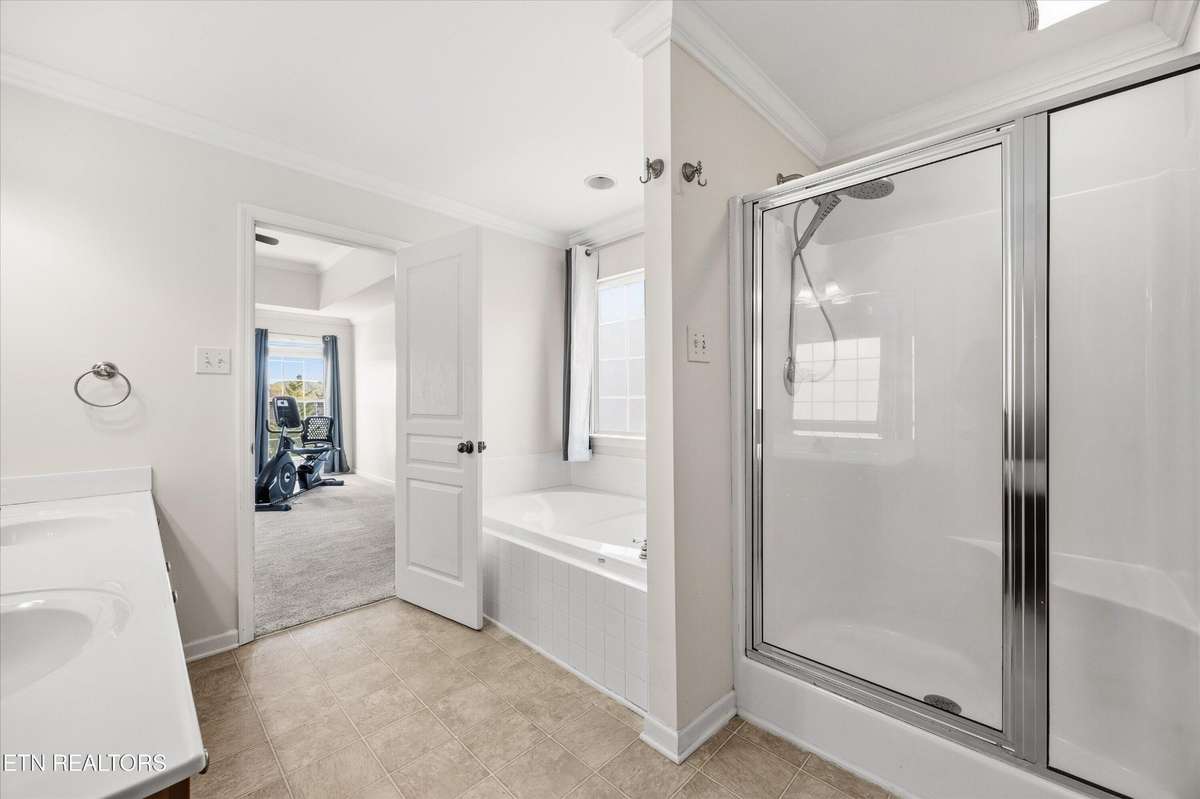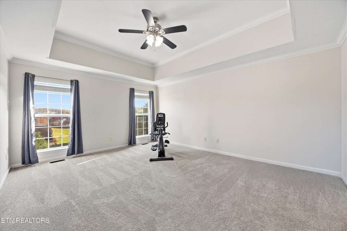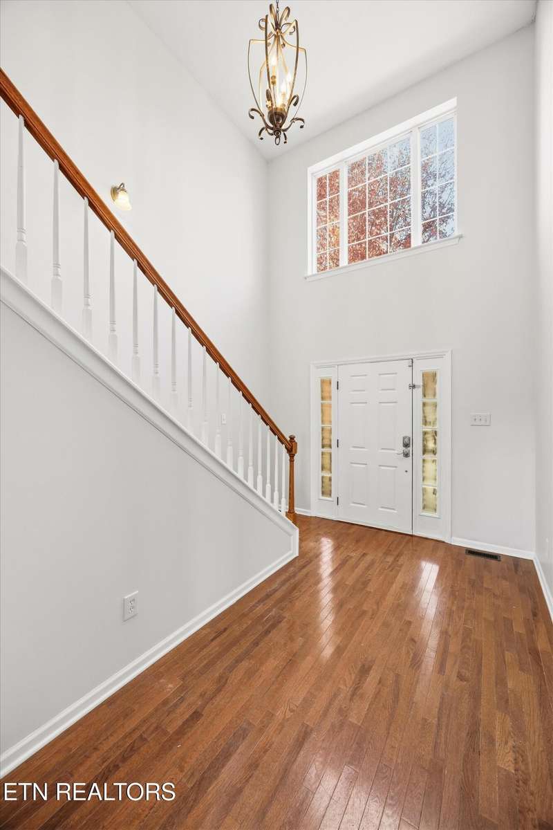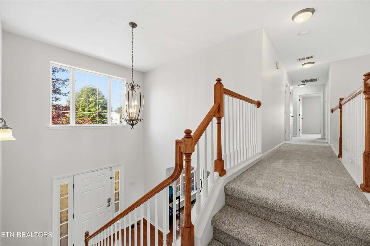 Discover this stunning 2- story home with a partially finished basement, perfectly situated within walking distance of the Hardin Valley Schools campus—complete with convenient sidewalks for easy access. Home has been freshly painted. Living space is open with soaring ceilings. Step out onto the deck to enjoy breathtaking views, perfect for morning coffee or evening gatherings. The main level features not only a primary suite, but also a guest bedroom and full bath. Upstairs you will find 4 bedrooms all with new carpet.