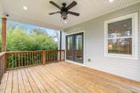 Fall in love with this beautifully crafted modern home by a local builder, perfectly located just minutes from downtown, yet tucked away on a quiet street. Step inside to discover designer finishes throughout, including engineered hardwood flooring, 9- foot ceilings, and a custom gas fireplace anchoring the living space. The kitchen shines with quartz countertops, soft- close solid wood cabinetry, stainless steel appliances, and a gas range. Retreat to the spacious primary suite, featuring a tray ceiling, oversized walk in shower and a generous walk- in closet. Out back, enjoy the large covered deck and fully fenced yard lined with bamboo for added privacy - a perfect setting for entertaining or quiet evenings. Additional highlights include a tankless natural gas water heater and exceptional craftsmanship throughout.