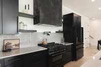 The culinary kitchen is both functional & refined, featuring a dramatic quartz waterfall island, custom Schrock cabinetry, and black Z- Line appliances including a 36” gas range. Wide plank white oak flooring, vaulted ceilings, an electric fireplace and designer finishes add warmth and sophistication throughout. Multiple verandas and one with a wet bar provide year- round flexibility for living and entertaining.