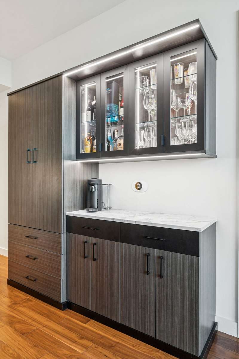 Experience elevated city living with stunning skyline, river, and stadium views from one of the best one- bedroom floor plans at the Four Seasons Private Residences. This home stands out with custom upgrades throughout, including a fully integrated smart lighting and shade system, a built- in bar and coffee area, expanded Italian cabinetry, Calacatta marble counters and backsplash, and a California- style custom closet for maximum storage.