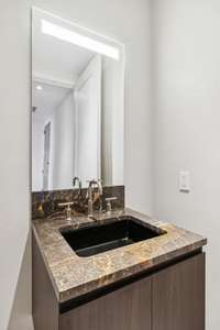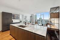 The open living space is flooded with natural light and frames sweeping views through floor- to- ceiling windows. The spa- inspired primary suite features a marble shower, soaking tub, and premium finishes. A powder bath, private storage unit, and dedicated resident elevator access add everyday convenience.