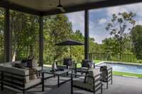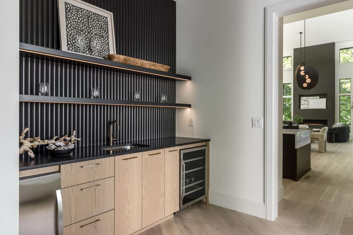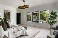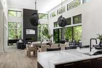 The gourmet kitchen is a true chef’s dream, showcasing custom white oak cabinetry, exquisite quartz surfaces, chef- grade appliances, and a discreet hidden prep kitchen designed for catering, staging, and culinary flow. A private office with patio access offers a luxurious workspace surrounded by peaceful natural vistas. Each of the five bedrooms has been thoughtfully designed as its own retreat, featuring spa- inspired ensuite baths, timeless finishes, and captivating views across the property. Dimensions for the fifth bedroom are 15x18, providing generous space and comfort.