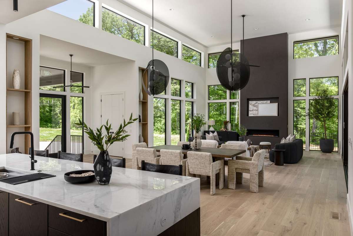 Discover unparalleled luxury and sophistication at this breathtaking ridge- top estate, perfectly positioned to capture sweeping skyline views of downtown Nashville. Set on five pristine acres, this architectural masterpiece blends modern elegance with resort- style living. Soaring ceilings and dramatic walls of glass flood the great room with natural light and open seamlessly to a covered patio overlooking the pool, creating an effortless indoor- outdoor experience ideal for both intimate evenings and grand entertaining.