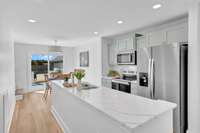 Step inside to discover an inviting open- concept main level designed for both everyday living and entertaining. The chef’s kitchen features a spacious island, sleek finishes, and plenty of room to gather with friends and family. Two generous bedrooms and a full bath complete the first floor, offering comfort and convenience for guests or family.