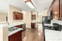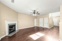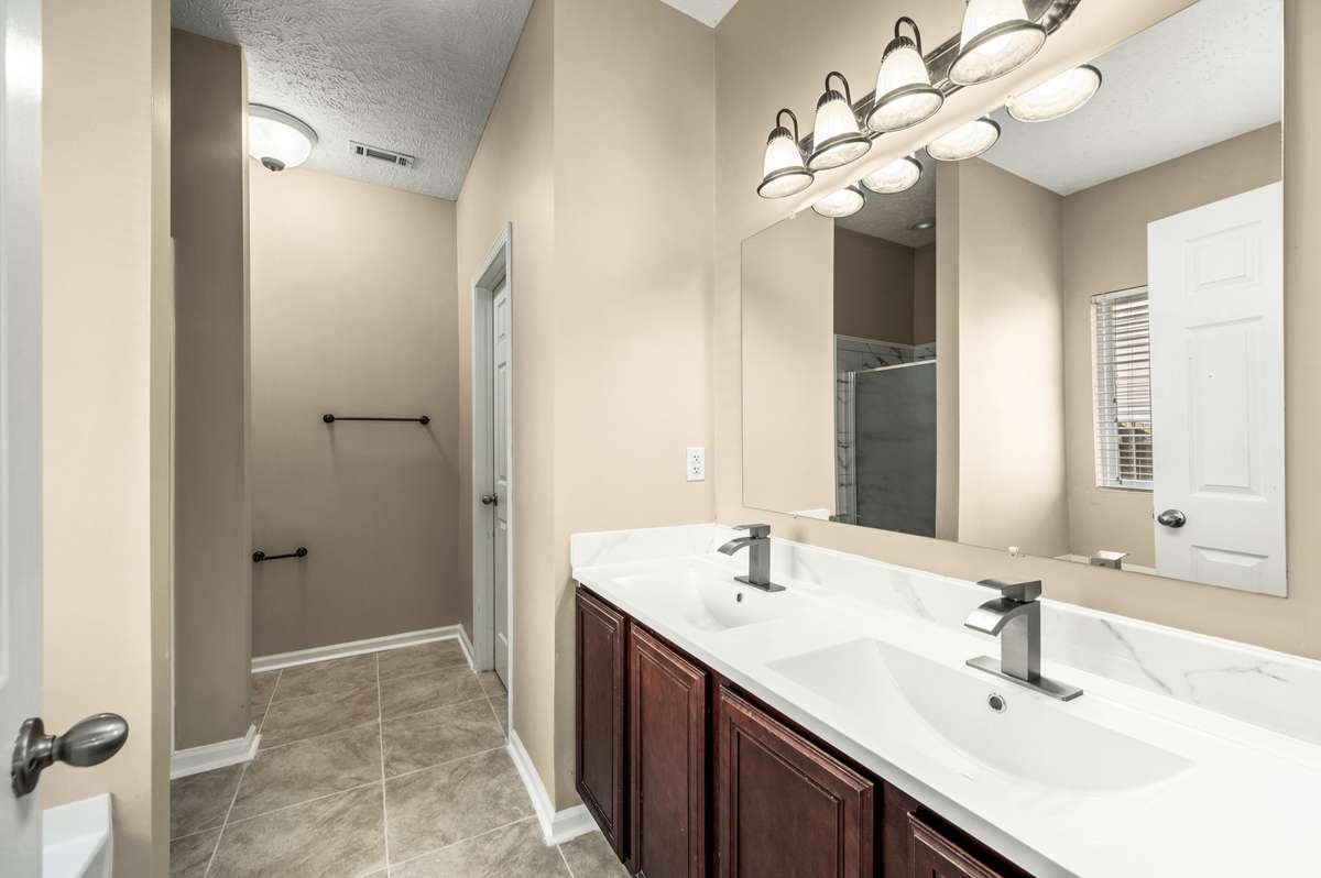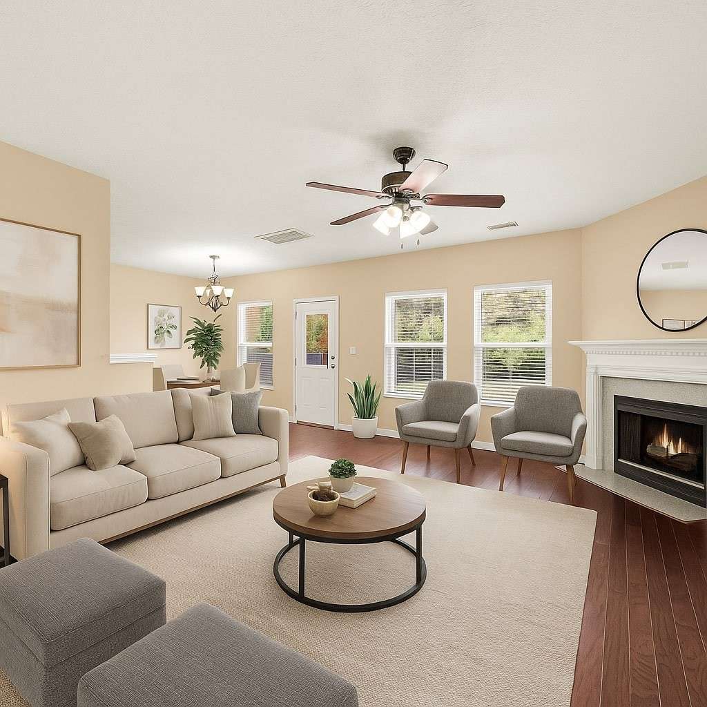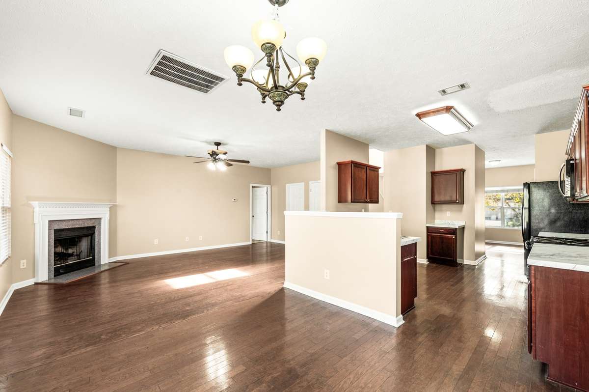 Welcome to this beautiful 3- bedroom, 2- bathroom home in Brentwood, perfectly situated within walking distance of local shops and businesses. Spanning 2, 206 square feet, this charming property combines comfort, convenience, and style. Spacious Front Yard & Covered Porch – Ideal for relaxing or entertaining outdoors. The Inviting Living Area with Hardwood floors and a cozy fireplace creates a warm, welcoming atmosphere. Open Kitchen – Flooded with natural light, featuring an eat- in area with views of the large, fenced- in backyard. Primary Suite ( Main Floor) – Includes a tub, separate shower, and double vanities for added luxury. Upstairs – Two additional bedrooms plus a bonus room located above the spacious two- car garage.