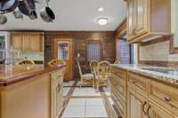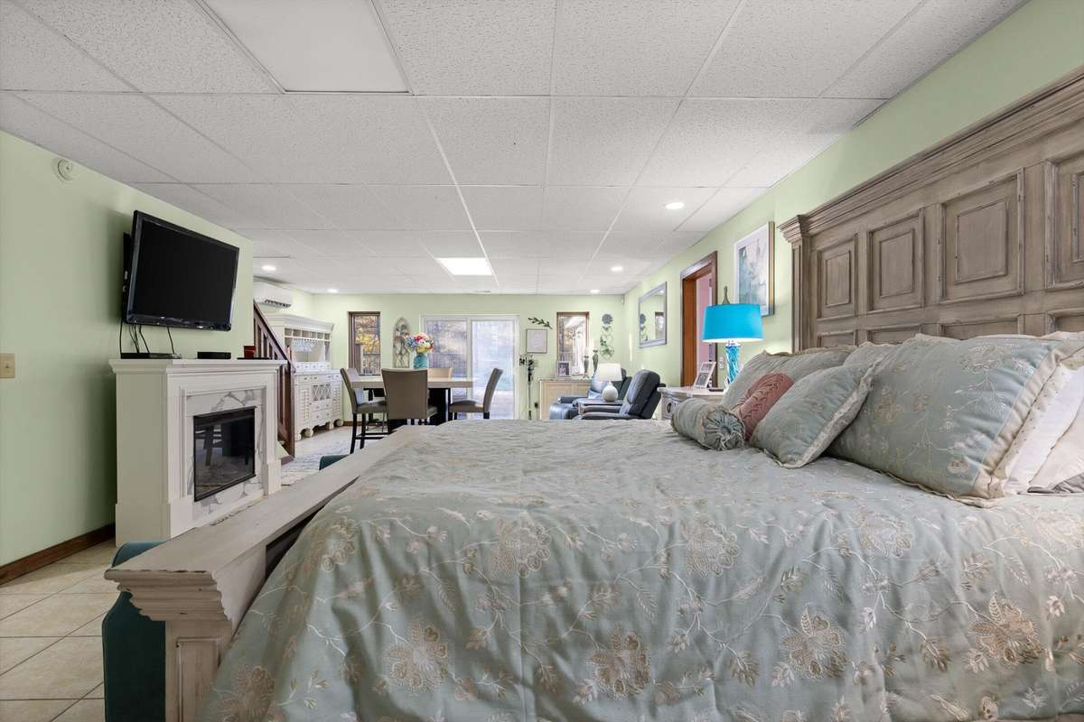 The main home features five bedrooms and four bathrooms, showcasing warm wood finishes, vaulted ceilings, and the timeless charm of exposed beams. With three full kitchens, the layout offers incredible flexibility for hosting, extended family, or rental opportunities.