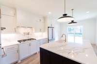 This stunning home offers 4 bedrooms and 3 baths, thoughtfully designed with the primary suite and Bedroom # 2 on the main level, and Bedrooms # 3 and # 4 upstairs. The kitchen showcases quartz countertops and backsplash, complemented by matte white GE Café appliances—including the refrigerator. Secondary baths feature quartz countertops, while the great room highlights a floor- to- ceiling stone fireplace and a beautiful trim package throughout. Elegant black and champagne bronze finishes add a touch of modern sophistication. Additional features include a spacious 22x31 bonus room over the 3- car garage, epoxy- coated garage floors, and sod in the front and side yards. Enjoy outdoor living on the covered, screened- in porch—perfect for relaxing or entertaining.