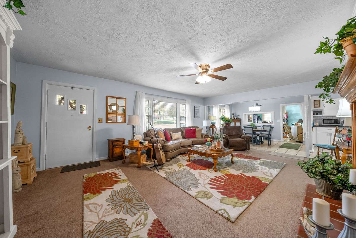 This beautifully maintained 3- bedroom, 1- bath brick home offers a functional layout and plenty of character. Enjoy cozy evenings by the fireplace and cook with style in the kitchen featuring wood countertops and classic subway tile. The home includes a mix of hardwood and tile flooring throughout. Step outside to a spacious deck perfect for entertaining, plus a storage building for extra space. Additional highlights include a concrete driveway and a convenient garage. Move- in ready and full of charm!