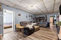 Inside, the home features three versatile rooms. The largest back room can easily serve as a primary suite or a second living room/ den, offering flexibility for different needs. The kitchen is situated at the rear of the home, and the laundry area is enclosed just off the back patio.