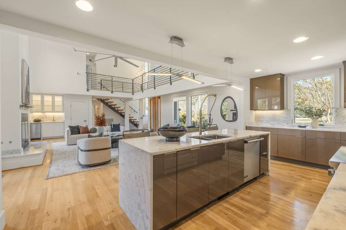 Extremely rare find! One of the only contemporary homes in the highly desired Oak Hill neighborhood. Designed by the beloved and local Root Arch and built with no detail spared… This one is captivating: the lot is set back among mature trees, with an open lawn and a private setting. The home is a work of art, but still inviting and warm. Perfect for cozy family gatherings, with the space to entertain family + friends for the holidays. Enjoy the rooftop deck, the back patio with an outdoor fireplace, and more. This home is complete with viking appliances, imported stones, reclaimed brick, and so much more. The sellers have added the office space and completed the 3rd garage bay with heating and cooling - great for an in- home gym, shop, etc.