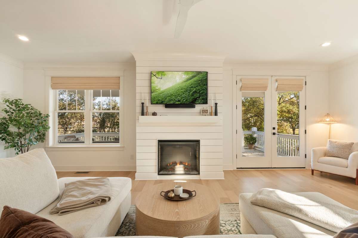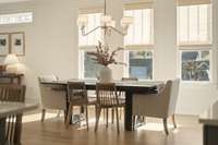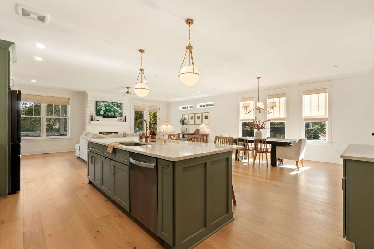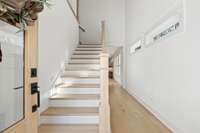 Step inside to a welcoming two- story foyer that floods the home with natural light and immediately sets the tone for the open, airy floor plan ahead. The living space showcases modern design with warm finishes, wide- plank hardwoods, designer lighting fixtures, and seamless flow between the kitchen, dining, and living areas - perfect for everyday living and entertaining.