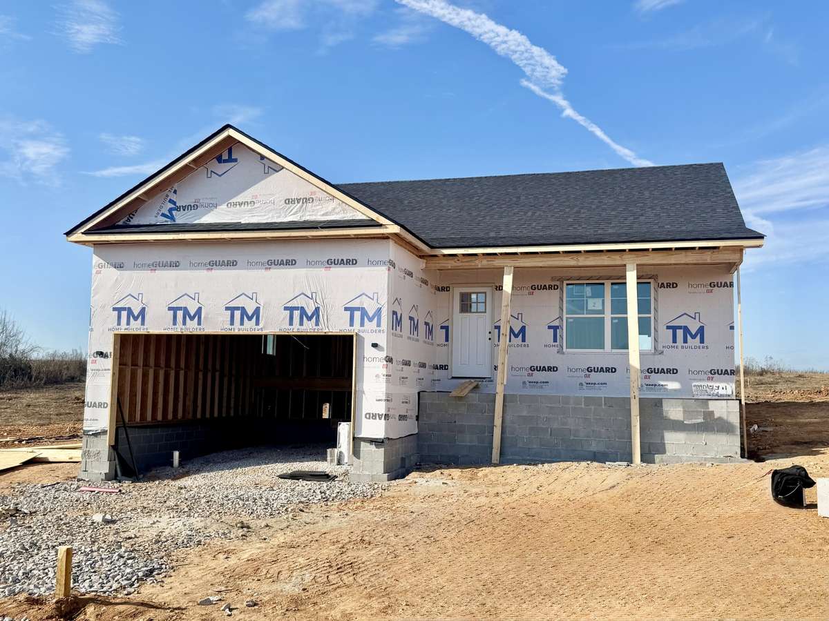 Introducing you to ECHO RIDGE SUBDIVISION! Looking for a Sleek & Modern Ranch Home, near Ft. Campbell and I- 24, UNDER $ 300, 000, with 4% of Purchase Price in Seller Concessions? On top of that... NO HOA' s! HERE IT IS! This Big Easy Floor Plan features an Open Concept design with 3 Bedrooms and 2 Bathrooms. You will love the extra- large living space, natural light, and gorgeous high- vaulted ceilings that opens up into your kitchen. Kitchen featuring stainless- steel appliances and beautiful granite counter tops. Laminate in main living room, kitchen and laundry room, carpet in all bedrooms. Tiled bathroom flooring. Master suite features spacious on- suite with XL walk- in closet and walk- in shower. Covered front- porch and deck! Front and side sodded yard with seed & straw in backyard. Epoxy garage. EXAMPLE FINISHED PHOTOS SHOWN HERE.