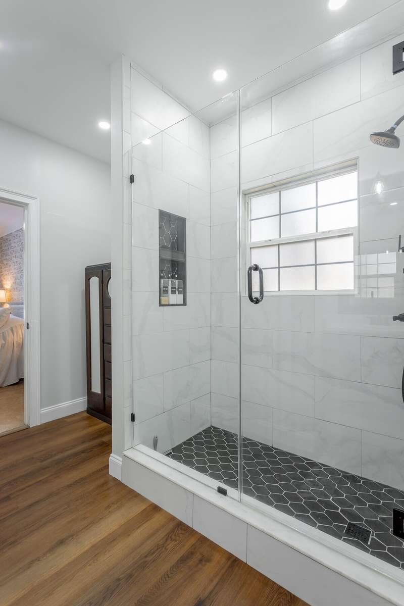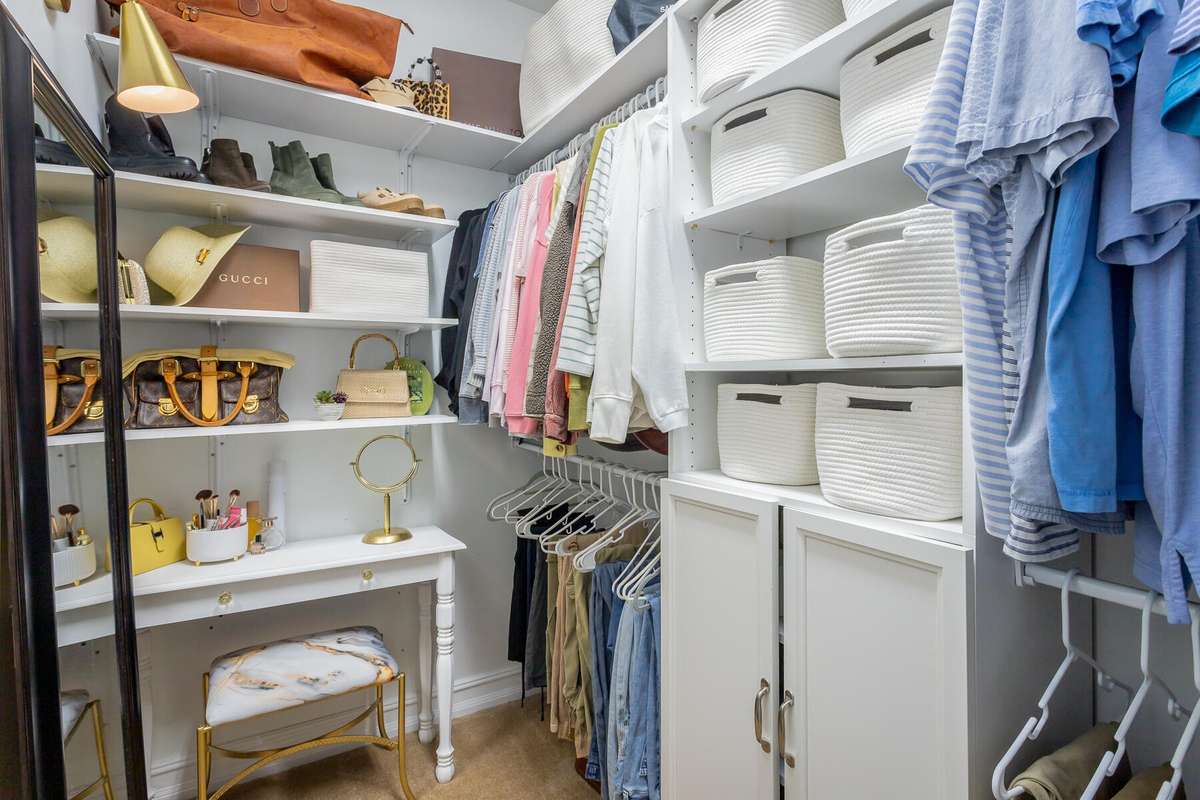 The main level primary suite features an updated en- suite bathroom with dual vanities, a walk- in shower and spacious closet with an optional dressing area to the left of the shower. Upstairs, two additional bedrooms provide ample space with walk- in closets and an adjacent full bathroom, while a flexible fourth room can easily serve as a guest bedroom, home office, playroom, or media space. A second bonus space currently being used as a home office provides additional flexibility.