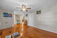 4- bedroom, 2. 5- bath home offers a great layout with a huge kitchen that opens to the living areas, creating an easy flow throughout. It features hardwood and tile flooring, a nice- size laundry room, and an accessible bathtub for added convenience. Enjoy the outdoors with a covered deck and spacious front and back yards, plus a concrete driveway, carport, and storage building for extra space. The home also includes a durable metal roof and a propane tank, combining practicality with comfort—ready for you to move right in and make it your own. Small cottage on the property that can bring in potential income.