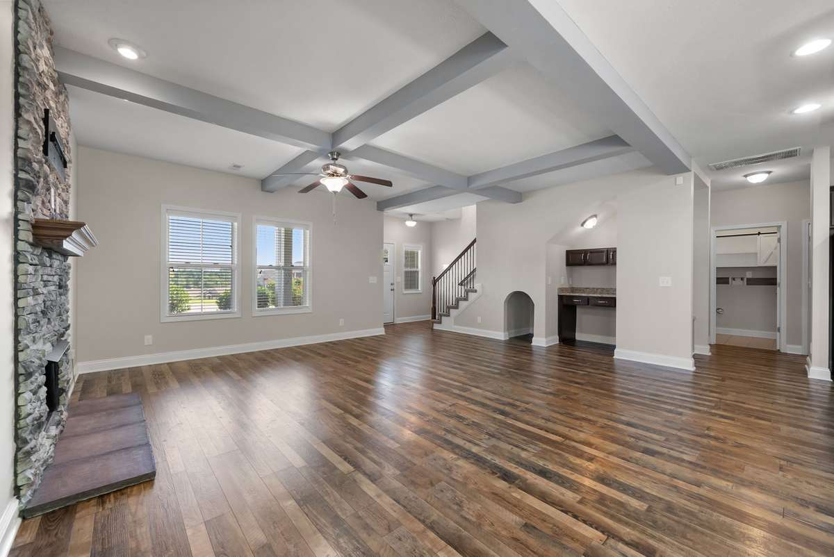 FRESHLY PAINTED! No backyard neighbors and no neighbor to one side of this home - talk about having privacy but still the benefits of subdivision living! Spacious open concept main floor is perfect for entertaining or just relaxing after a long day. The open living space walks out onto a covered patio with view of nature. You have the benefit of a fenced in backyard w/ the upgraded fence already installed. This home features a huge primary suite on the main floor. The primary bathroom has 2 separate vanities, a glass shower, garden tub, linen storage & private area for commode. Laundry & 1/ 2 bath are also on the main floor. 3 additional bedrooms, 2 full baths and large rec room are all on the 2nd floor. Park all of your coats, shoes & gear on the built in coat tree/ mud bench when you arrive at your new home! This home is move in ready and has been freshly painted with upgraded wipeable paint - all that' s needed is you!