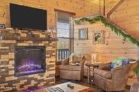 The main level features two king bedrooms, a full bath, a cozy living room with an electric fireplace, and a smart TV. The open- concept dining area easily seats 10, and the kitchen comes fully stocked with everything you need.