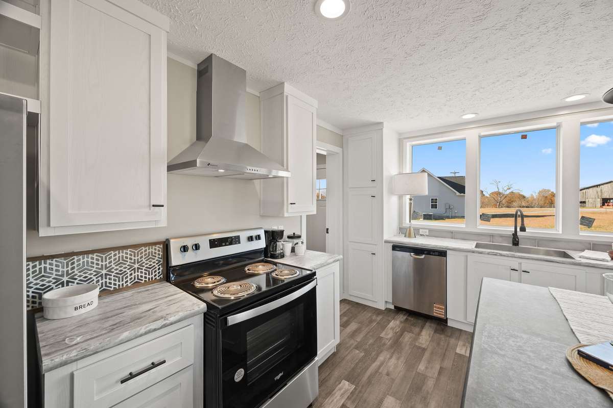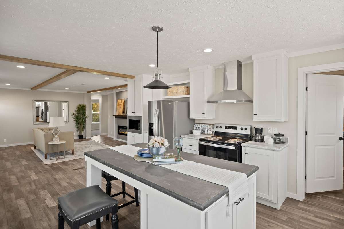 Situated on 1. 28 acres in a tranquil country setting, this new three- bedroom, 2- bath home features an open floor plan, highlighted by a living room with a fireplace and beamed ceilings. The split bedroom plan includes a spacious primary suite complete with a beautifully appointed tiled walk- in shower, dual sinks, lots of vanity cabinetry space and a walk- in closet. A large back deck provides a seamless transition to the backyard, leading to the creek. Additional features include a walk- in laundry room with storage cabinetry and shelving, as well as a stylish island kitchen filled with natural light courtesy of the large windows and modern stainless- steel appliances. Located just 20 minutes from shopping, Walmart and town this residence boasts premium insulated windows, an energy- efficient HVAC unit, newly landscaped grounds and fiber internet available. Call today to view this move in ready home!