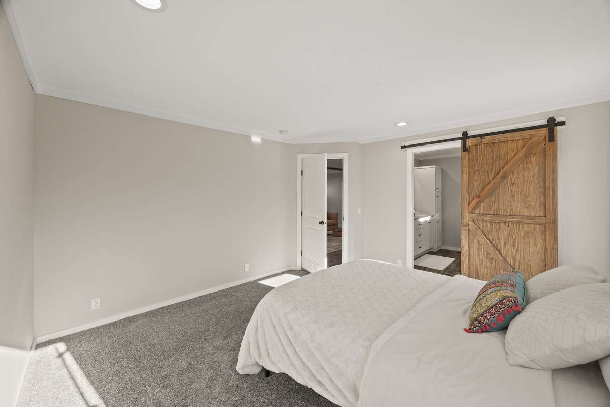 Situated on 1. 28 acres in a tranquil country setting, this new three- bedroom, 2- bath home features an open floor plan, highlighted by a living room with a fireplace and beamed ceilings. The split bedroom plan includes a spacious primary suite complete with a beautifully appointed tiled walk- in shower, dual sinks, lots of vanity cabinetry space and a walk- in closet. A large back deck provides a seamless transition to the backyard, leading to the creek. Additional features include a walk- in laundry room with storage cabinetry and shelving, as well as a stylish island kitchen filled with natural light courtesy of the large windows and modern stainless- steel appliances. Located just 20 minutes from shopping, Walmart and town this residence boasts premium insulated windows, an energy- efficient HVAC unit, newly landscaped grounds and fiber internet available. Call today to view this move in ready home!