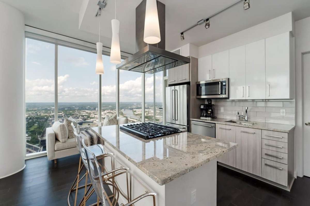 Wake up to skyline views and wind down with unforgettable sunsets in this stylish high- rise corner condo in the heart of downtown Nashville. Floor- to- ceiling windows and a private balcony bring the city to you — from the twinkle of Broadway lights to the fireworks at First Tennessee Park to the quiet beauty of the Cumberland at dusk.