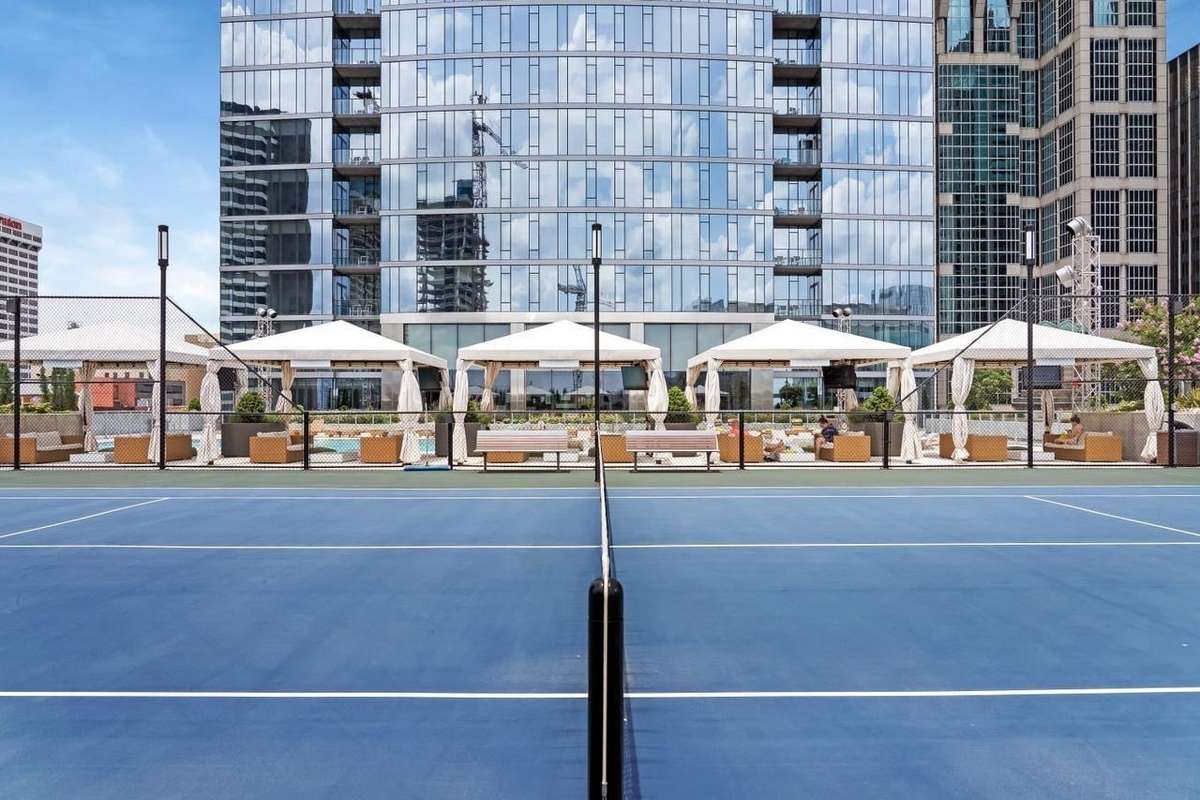 Designed for easy, elevated living, this home offers open spaces, modern finishes, and a seamless flow from kitchen to living to balcony. Enjoy the full Nashville lifestyle with on- site amenities that make every day feel like a staycation — a resort- style pool with cabanas, state of the art fitness center, tennis and pickleball courts, a catering kitchen, and chic social lounges perfect for entertaining friends before a night out.