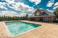 When it’s time to unwind, the beautiful outdoor pool provides a refreshing escape, complete with plenty of seating for sun or shade, including tables and chairs for lounging or gathering with friends.