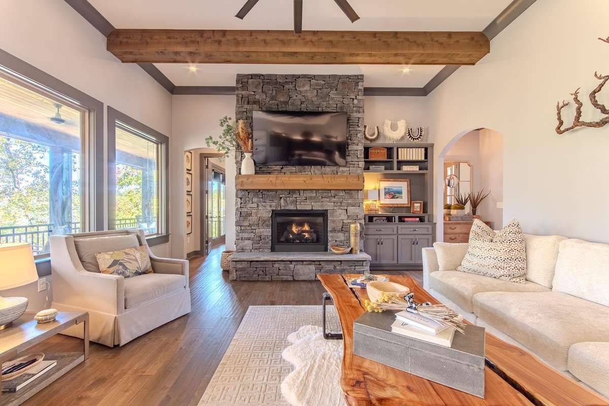 Nestled within the prestigious gated community of The Preserve at Pickwick, this stunning four- bedroom home offers luxurious living. The main level welcomes you with an open- concept design, showcasing hardwood floors, a striking stone fireplace, & rustic cedar beams. The gourmet kitchen features custom cabinetry, elegant quartz countertops, & stainless steel appliances. The master suite is complete with a tile shower & heated floors. Step outside onto the covered porch over looking the wooded scenery & the waters of Pickwick Lake. Boating enthusiasts will appreciate the convenience of a covered slip in a private dock, equipped w/ a ski boat lift & seadoo port. The lower level is designed for relaxation & entertainment, boasting a spacious den/ media area, three additional bedrooms, & a full bath. Enjoy the outdoors year around on the large screened porch. Enjoy access to amenities including, clubhouse w/ swimming pool, golf simulator, HydroMassage, putt- putt, pickleball, tennis & more!