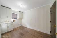 An oversized laundry room with a sink offers everyday convenience and direct access to the two- car garage. Smart- home features include a Google Nest thermostat with temperature- control sensor, plus Blink video doorbell and camera—all smartphone compatible. Outdoors, low- maintenance landscaping and gutter guards keep upkeep simple.