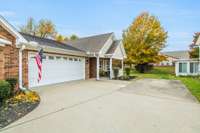 Enjoy 1 level living with no stairs, oversize 2 car garage ( new opener 2023) and extra parking. This home features a lovely covered front porch and a private back patio with retractable awning, overlooking one of the larger lots in the subdivision. 1792 square feet full of natural light, freshly painted with new LVP flooring! No carpet! HVAC replaced 2024. A beautiful entry foyer takes you to a large open plan with combination Living Room, Dining Room and Flex Room or Office with a gas fireplace with remote. A large open Kitchen features lots of cabinets, under counter lighting on remote, eat in Breakfast Room, Pantry and new dishwasher in 2022. The large Master Suite includes a large walk in closet, additional 2nd closet and large Master Bath with double vanities, tub and walk in shower. Your Guest Bedroom has a convenient 2nd full Bath just outside the door. Hot Water Heater 2021. 55 plus community with sidewalks, access to pool, clubhouse w/ exercise room & playground. Convenient to grocery stores, banks, restaurants & medical facilities.