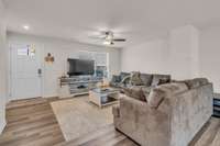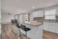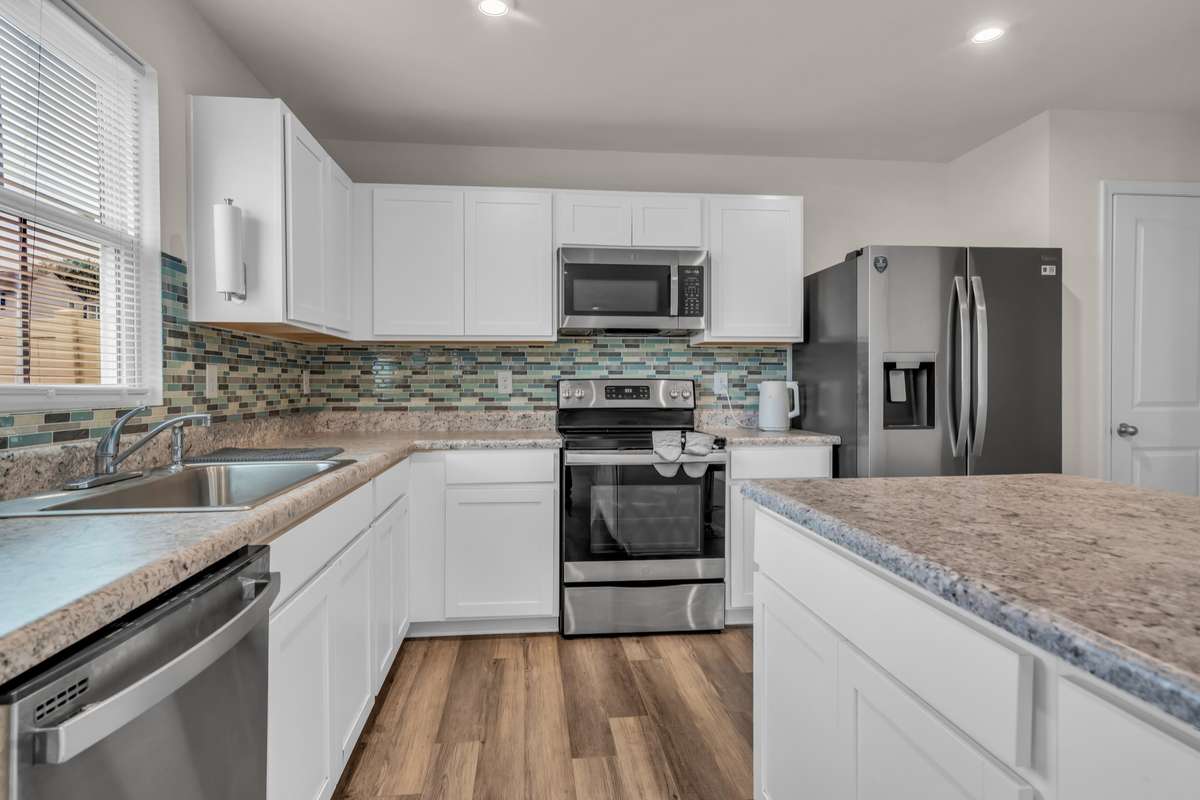 Beautiful 4- Bedroom Family Home with Open Floor Plan! Welcome to this warm and inviting home designed for comfortable family living. The spacious open floor plan connects the living, dining, and kitchen areas—perfect for gatherings and quality time together. The modern kitchen features a beautiful backsplash, large island, and plenty of storage, making it ideal for family meals and entertaining. The four bedrooms offer plenty of space for everyone, including a relaxing primary suite. Step outside to a large fenced backyard where kids and pets can play safely or where you can host weekend barbecues. This is the perfect place to make lasting family memories!
