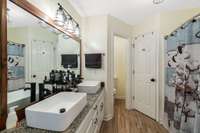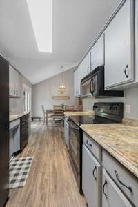 The light- filled living room features soaring ceilings, creating an open and inviting atmosphere. In 2023, new LVP- flooring was installed in the living room, dining room, and kitchen, along with updated lighting to enhance the home' s warm and welcoming feel. The bathrooms were beautifully remodeled in 2024 and 2025, including new flooring in each, adding both style and function. New Hot Water Heater installed 11/ 1/ 2025!