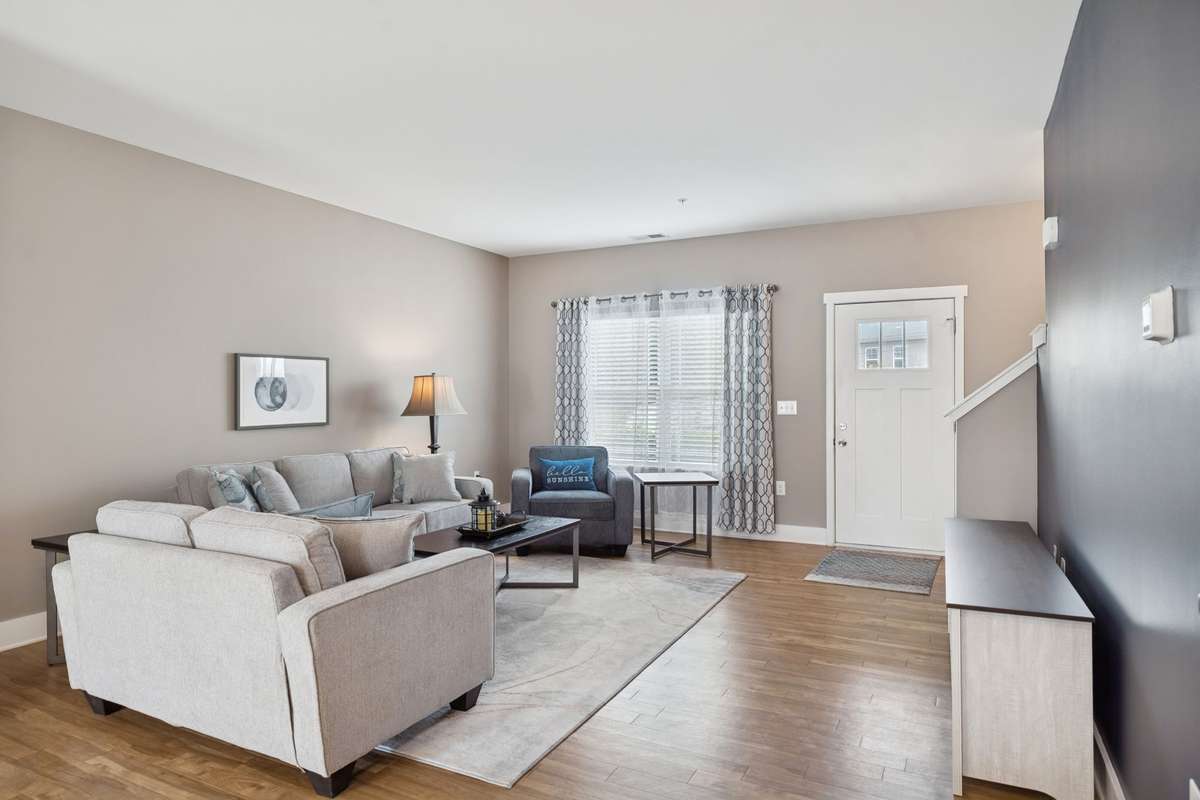 This impeccably maintained townhome offers the perfect blend of comfort, convenience, and community living. Nestled at the end of a tranquil street, yet just moments from shopping, groceries, and dining. The main floor plan, with a delightful kitchen is not only spacious but also features a pantry, a coat closet and a guest friendly half bath, adding to its functionality. Upstairs, two roomy bedrooms each boast large closets and private ensuite bathrooms, ensuring personal space and comfort. Outdoor enthusiasts will appreciate the private patio with extended fencing, ideal for relaxation or gatherings, alongside a large exterior storage closet. This move- in- ready home comes with two designated parking spaces, and easy access to I- 65 makes commuting a breeze. The Somerset Springs community enhances your lifestyle with amenities like a swimming pool, fitness center, walking trail, and playground, catering to diverse interests. With friendly neighbors and ample privacy, this townhome is perfect for both peaceful evenings at home and an active social life.