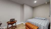 Upstairs, the spacious primary suite offers a tranquil escape with a spa- like bathroom featuring dual vanities, a spacious shower, and a large walk- in closet. Two additional well- sized bedrooms and two full baths provide comfort for family or guests. The finished basement is a showstopper, featuring a state- of- the- art home theater with a 120- inch movie screen and surround sound speaker system ( included with the home) , plus abundant storage and a dedicated workshop for DIY projects or hobbies.