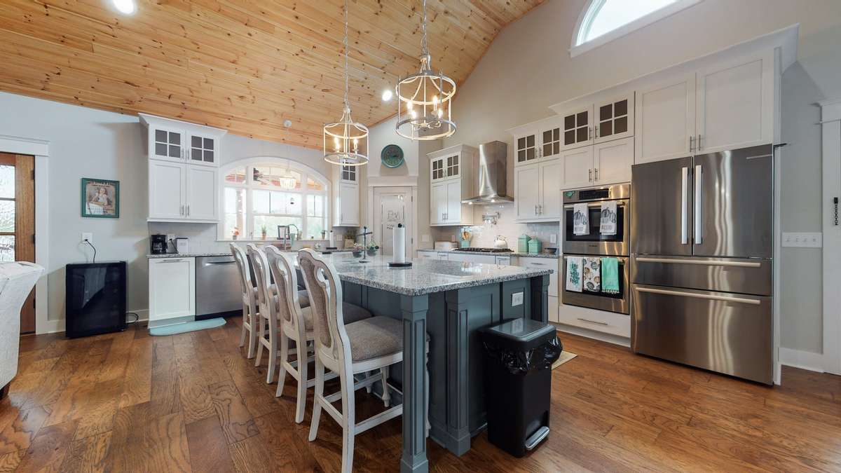 Outside, an impressive 1, 300 sq. ft. wrap- around cedar porch creates an unparalleled setting for entertaining, relaxation, or enjoying the expansive 0. 60- acre lot with mature landscaping and an outdoor shower. The attached 3- car garage, conveniently located at the rear of the house, offers ample storage, and the home’s curb appeal shines with manicured lawns. With no HOA, enjoy the freedom to personalize your space.
