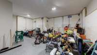 Upstairs, the spacious primary suite offers a tranquil escape with a spa- like bathroom featuring dual vanities, a spacious shower, and a large walk- in closet. Two additional well- sized bedrooms and two full baths provide comfort for family or guests. The finished basement is a showstopper, featuring a state- of- the- art home theater with a 120- inch movie screen and surround sound speaker system ( included with the home) , plus abundant storage and a dedicated workshop for DIY projects or hobbies.