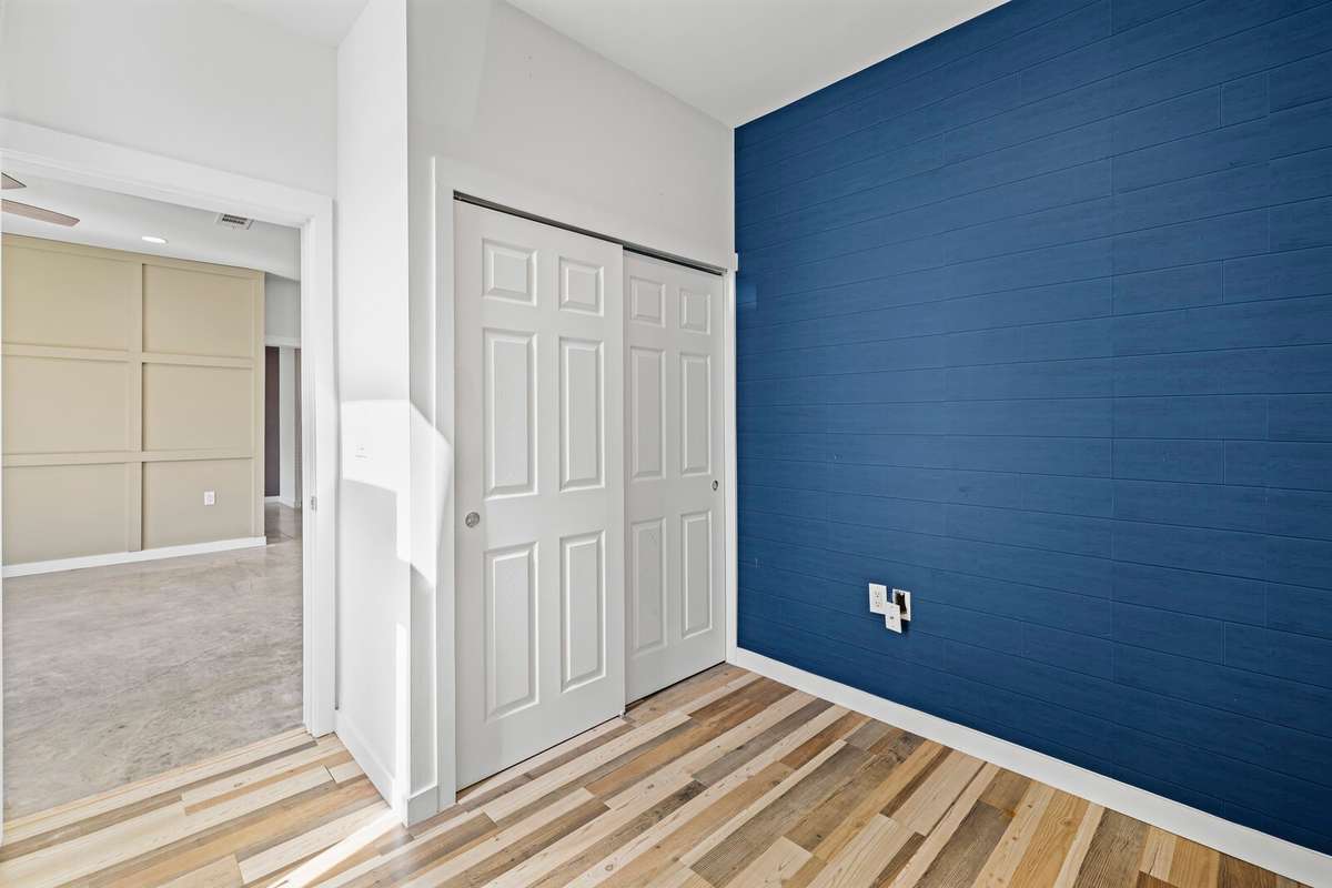 Inside, discover a bright, contemporary space with soaring 10- foot ceilings, sleek concrete floors, and dramatic floor- to- ceiling windows that fill the home with natural light. The open layout connects effortlessly to a chef- inspired kitchen featuring granite countertops, stainless steel appliances, and ample cabinetry.