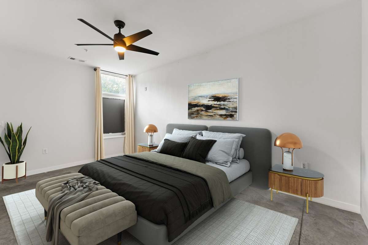 The spacious primary suite offers a walk- in closet, while the flexible second bedroom comfortably fits a full size bed and side table or makes the perfect home office or creative workspace. Step outside to your private extended terrace, ideal for morning coffee or unwinding in the evening.
