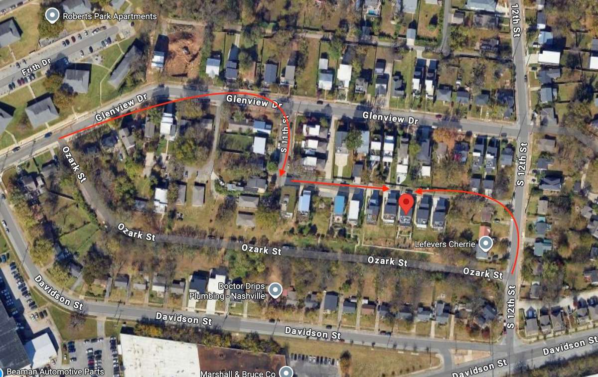 East on Shelby Ave. Right (South) on 12th. Turn right into Alley just past Glenview. Home and Driveway are on the left.
