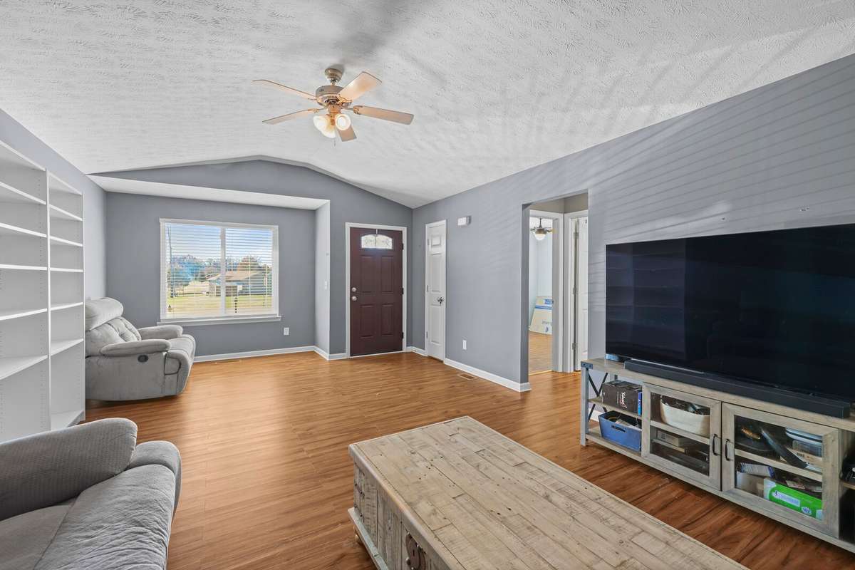 Welcome home to this charming 3- bedroom, 2- bath residence offering 1, 310 sq. ft. of comfortable living in the heart of town. Nestled in a great neighborhood, this home combines convenience with cozy appeal. Step into the inviting living room, perfect for relaxing or entertaining guests. The spacious kitchen features hardwood cabinets, an eat- in dining area, and easy access to the back deck for seamless indoor- outdoor living. The primary suite, located just off the kitchen, boasts a trey ceiling, an en- suite bathroom, and a private door leading to the deck, a perfect spot for morning coffee or evening unwinding. The home also includes a large laundry room for added functionality. Outside, you’ll find a fenced- in backyard ideal for pets, play, or hosting gatherings. With its central location, this home offers quick access to shopping, schools, and dining, everything you need just minutes away. A wonderful opportunity for comfortable living in a welcoming community! Up to 1% lender credit on the loan amount when buyer uses Seller' s Preferred Lender.