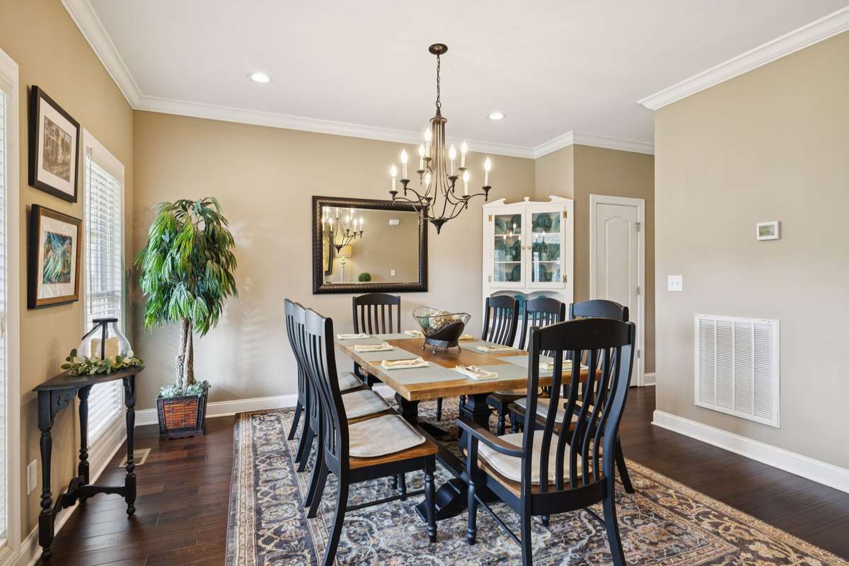 Experience refined one- level living in this custom- built home perfectly set on 2. 85 private acres surrounded by mature trees and peaceful scenery. Thoughtfully designed with timeless style and quality craftsmanship, this 3- bedroom, 2. 5- bath residence offers an open, elegant layout with soaring 11- foot ceilings in the great room, 9- foot ceilings throughout, and tray ceilings in both the primary suite and one of the guest bedrooms. The welcoming living room centers around a classic fireplace and opens to a formal dining room and an inviting breakfast nook—ideal for gatherings both large and small. The gourmet kitchen features granite countertops, soft- close cabinetry and drawers, and a functional design that blends luxury and practicality. Hardwood floors run seamlessly throughout the main living areas, complemented by tile in the bathrooms and laundry room. The spacious primary suite includes dual walk- in closets, double vanities, and a spa- inspired tile shower. Additional upgrades include two hot water heaters, a recirculating pump for instant hot water, and an encapsulated crawl space for energy efficiency and peace of mind. The laundry room offers a stainless utility sink and an adjoining storage room for added convenience. Outdoor living is just as impressive, featuring covered front and back porches that invite you to relax and unwind while overlooking the tree- lined backyard. Enjoy evenings around the firepit, surrounded by mature fruit trees and open green space—perfect for entertaining or peaceful solitude. From the elegant glass- detailed front door to every carefully chosen finish, this home reflects comfort, craftsmanship, and understated luxury in every detail.