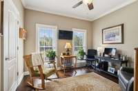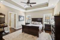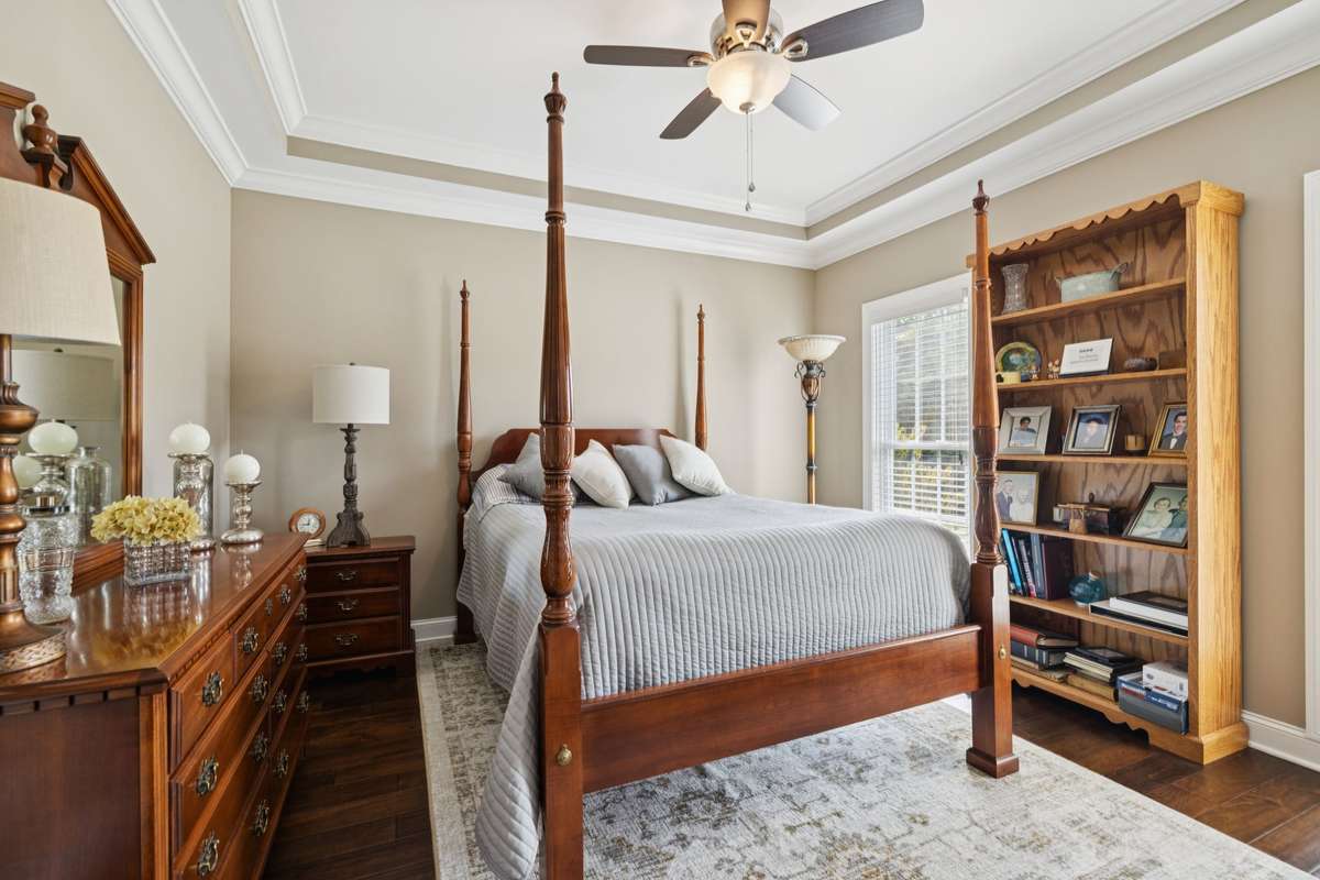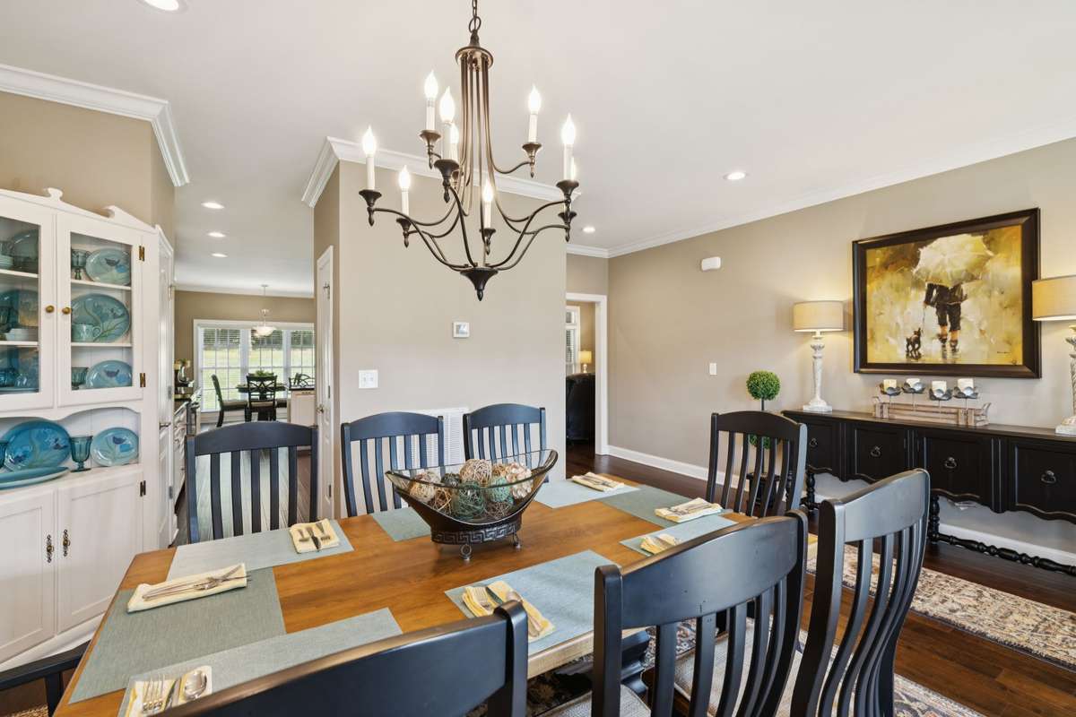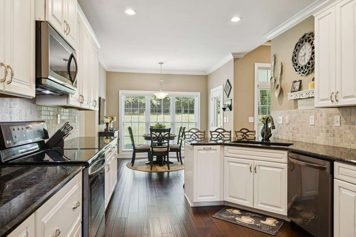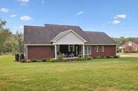 Experience refined one- level living in this custom- built home perfectly set on 2. 85 private acres surrounded by mature trees and peaceful scenery. Thoughtfully designed with timeless style and quality craftsmanship, this 3- bedroom, 2. 5- bath residence offers an open, elegant layout with soaring 11- foot ceilings in the great room, 9- foot ceilings throughout, and tray ceilings in both the primary suite and one of the guest bedrooms. The welcoming living room centers around a classic fireplace and opens to a formal dining room and an inviting breakfast nook—ideal for gatherings both large and small. The gourmet kitchen features granite countertops, soft- close cabinetry and drawers, and a functional design that blends luxury and practicality. Hardwood floors run seamlessly throughout the main living areas, complemented by tile in the bathrooms and laundry room. The spacious primary suite includes dual walk- in closets, double vanities, and a spa- inspired tile shower. Additional upgrades include two hot water heaters, a recirculating pump for instant hot water, and an encapsulated crawl space for energy efficiency and peace of mind. The laundry room offers a stainless utility sink and an adjoining storage room for added convenience. Outdoor living is just as impressive, featuring covered front and back porches that invite you to relax and unwind while overlooking the tree- lined backyard. Enjoy evenings around the firepit, surrounded by mature fruit trees and open green space—perfect for entertaining or peaceful solitude. From the elegant glass- detailed front door to every carefully chosen finish, this home reflects comfort, craftsmanship, and understated luxury in every detail.